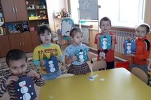 Бүген балалар "Серле кэгазь" тугәрәк эшендэ нәни куллары белэн оригами ярдәмендә Кыш бабай ясадылар.
