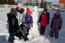 На прогулке слепили Снеговика.