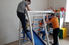 Самое любимое занятие в садике – физкультура. Заниматься физкультурой на новом спортивном оборудовании ещё интереснее: влезаем по гимнастической лестнице, качаемся на брусьях.