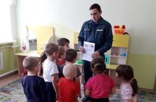 Безнең бакчабызда янгынга каршы хезмәт күрсәтү отрядының Зур Нөркәй авылын саклау буенча пост янгын сүндерүчесе Шайгарданов Ринат Рөстәм улы булып китте. Ул балаларга Яңа ел бәйрәме вакытында янгын куркынычсызлык кагыйдәләрен үтәргә, янгын чыккан очракта өйдә үзләрен ничек тотарга, ут, пиротехникалар белән уйнамаска кирәклеген искәртте. /Сегодня наши воспитанники встретились с пожарным противопожарной охраны Отдельного поста по охране с. Большое Нуркеево. Шайгарданов Ринат Рустамович познакомил детей с противопожарными правилами во время Новогодних праздников.