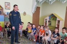 Безнең бакчабызда Сарман янгын күзәтчелегеннән Быренков Р.Н. булып китте. Ул балаларга Яңа ел бәйрәме вакытында янгын куркынычсызлык кагыйдәләрен үтәргә, янгын чыккан очракта өйдә үзләрен ничек тотарга, ут, пиротехникалар белән уйнамаска кирәклеген искәртте. \Сегодня наши воспитанники встретились с пожарным противопожарной охраны Сармановского района. Быренков Р.Н. познакомил детей с противопожарными правилами во время Новогодних праздников.