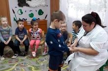 Сегодня у нас была сельский фельдшер. Она вела осмотр здоровья детей и проводила беседу о культурно-гигиенических правилах.