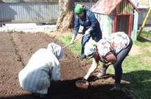 Сегодня работали на огороде: посадили лук, свеклу, морковь, картошку.