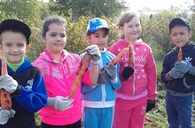 Со всей школой мы организовали уборку урожая с пришкольного участка . Этим мы обеспечили себя свежими овощами на всю длинную зиму.