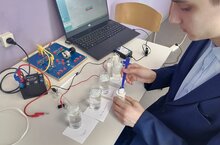 Югары сыйныф укучылары, физика һәм химиянең цифрлы лабораторияләреннән файдаланып, «Физик химия» практикумында үзләренең проект эшләре өчен сыек тирәлекләрдә электр тогын өйрәнү буенча эксперимент үткәрделәр.