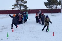 4 января ученики начальных классов собрались у школы. На свежем воздухе вместе играли в разные игры. -