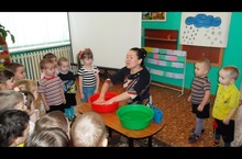 Икенче кечкенәләр төркеме балалары бигрәк кызыксынучан.Алар хәзер әйләнә-тирәне күзәтеп кенә калмыйлар,ә инде күргәннәренә анализ ясап, элементар нәтиҗәләр чыгаралар. "Тамчыкай" кунакка килгәч бергәләп су үзенчәлекләрен өйрәнделәр.Җылы,салкын су белән экспериментлар үткәрделәр.Тәрбияче С.Ф.Хакимуллина балаларның активлыгын арттыруда кызыклы уен,иҗади сәнгать,ТРИЗ,сөенеч мизгелләрен уңышлы файдаланды.