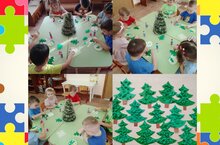 Йомарланган кәгазь белән икенче кечкенәләр төркеме балалары чыршы ясадылар./Аппликация в 2 младшей группе мятой бумагой.