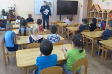 Государственный инспектор по МОНД и ПР по Муслюмовскому и Сармановскому МР УНД и ПР ГУ МЧС РФ Гарипов Р.Г. провел занятие с детьми подготовительной группы по пожарной безопасности 21.10.2021
