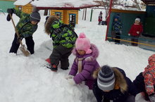 Зурлар төркеме балалары прогулка вакытында бик тырышып мәйданчыкта тау ясыйлар. 11.01.2017