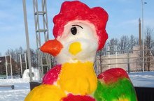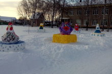 Яңа ел - бɵтен кешенең кɵтеп алган бəйрəме. Бакча хезмәткәрләре, әти-әниләр, бәйрәм күңелле һəм кызыклы үтсен ɵчен, бакчабыз ишек алдында кардан килəсе елның символы булган әтәч сынын һәм мультфильм геройларын ясап куйдылар. Яңа елга һəркем шат һәм күтәренке күңел белән аяк басып, ел буе сау-сəламəт яшəсеннəр. 14.12.2016