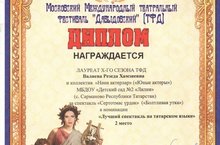 Безнең балалар бакчасы «Давыдовский» Халыкара театр фестиваленең Х сезоны лауреаты булды һәм «татар телендә иң яхшы спектакль»номинациясендә 2 нче урынны яулады.