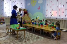 Во второй группе раннего возраста воспитатель Гайнемова Сирина Ринатовна показала игру со строительным материалом «Строим теремок».