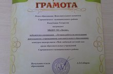 Безнең балалар бакчасы “Минем яраткан балалар бакчаcы” муниципаль бәйгедә “Өстәмә белем бирү учреждениеләре белән эшчәнлекне интеграцияләү буенча иң яхшы эш” номинациясендә җиңүче булды.