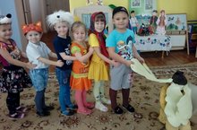 На занятиях по обучению русскому языку Глуся Флеровна предлагает детям среднего возраста игрушки, атрибуты, маски зверей для разыгрывания «Репки», «Колобка» и других сказок , добивается того, чтобы дети передавали настроение, меняли мимику. Проводит индивидуальную работу с детьми, поощряет желание играть небольшие роли. Дети учатся правильно произносить слова и словосочетания на русском языке, отвечать на поставленные вопросы, следить за развитием действия.