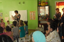 В детском саду прошла неделя русского языка. На протяжении этой недели воспитанники средней, старшей и подготовительной к школе групп знакомились с русским народным творчеством, играли в русские народные игры, читали и инсценировали сказки на русском языке, рисовали иллюстрации к русским народным сказкам, беседовали о ценности и красоте русского языка. Дети не только познакомились с русским народным костюмом, но и примерили его. Дети старшей и подготовительной к школе групп показали младшим группам сказки "Репка" и "Теремок" на русском языке. Так же активное участие приняли и родители.