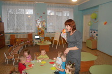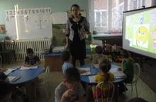 Балалар бакчасында. уртанчылар төркеменнән башлап. атнага өч тапкыр рус теле эшчәнлеге уздырыла. Эшчәнлекләрне рус теле тәрбиячесе Л.К.Низамова үткәрә. Һәр эшчәнлек балаларның яшь үзенчәлекләрен, мөмкинлекләрен истә тотып, уен формасында, бай күргәзмәлелек һәм УМК кулланып уздырыла. Балалар эшчәнлекләрдә бик кызыксынып шөгыльләнәләр.