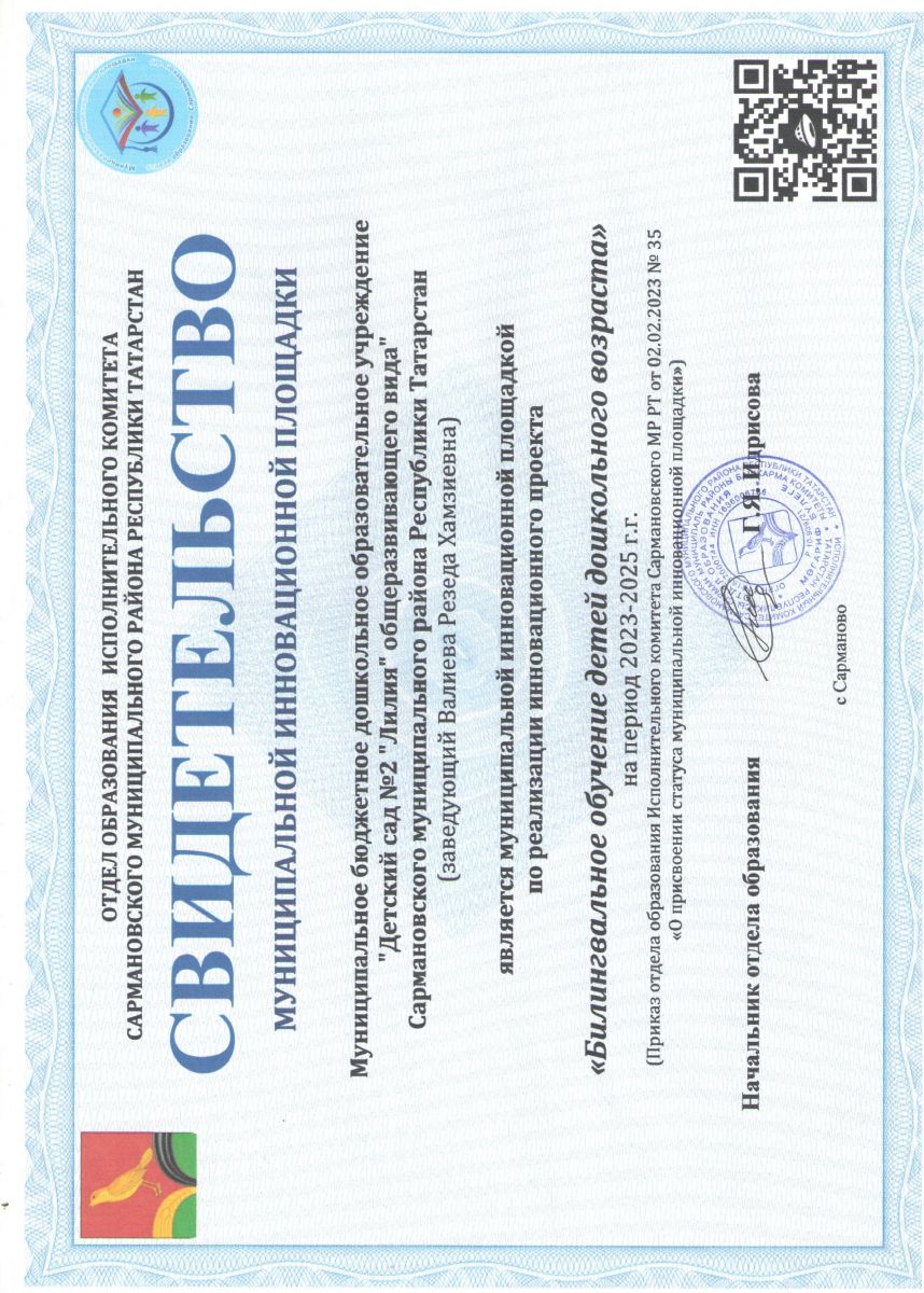 Муниципальная инновационная площадка по реализации проекта «Билингвальное обучение детей дошкольного возраста»