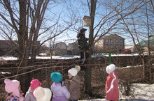 Мәктәпкә әзерлек төркеме әти- әниләре балалар бакчасы белән тыгыз элемтәдә торалар. Күптән түгел Нариманов Алмаз һәм Хадиуллин Райнурның әтиләре сыерчык оялары ясап алып килделәр.Матур ояларда сыерчыклар балаларын үстереп яшәсеннәр дип Нариманов Риф Ринат улы ояларны агачларга элеп куйды. Әти- әниләргә Бик Зур Рәхмәтебезне белдерәбез.