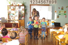 Мәктәпкә әзерлек төркемендә Альбина Маратовна ачык шөгыль күрсәтте. Шөгыльнең барышында балаларны грамоталылык нигезләрен үзләштерү эшенә актив әзерләү алып барды. Педагог максатчан рәвештә балаларны тәкъдим ителгән һәр сүзгә аваз анализы ясаррга: сузык авазларны, калын һәм нечкә әйтелешле тартык авазларны аера белергә, теге яки бу сүзне барлыкка китергән авазлар рәтендәә ориентлашырга. бирелгән модельләргә туры китереп сүзләр сайларга өйрәтте.
