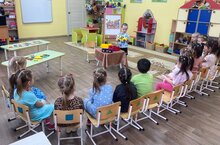 Гаилә белеме нигезләренә таянып, сөйләм теле үстерү шөгылендә тәрбияче Шаймуратова Р.Р. мәктәпкә әзерлек төркеме балалары белән гаилә әгъзаләренең ойдәге эшләре, балаларнын үзләре эшли ала торган хезмәтләре турында әңгәмә үткәрде. Балалар шушы теманы чагылдырган "Өч кыз" татар халык әкиятен рольләргә бүлеп, уйнап та карадылар./ На занятии по семъеведению дети после беседы инсценировали татарскую народную сказку "Три дочери".