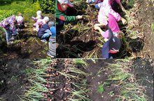 С подготовительной группой собрали урожай лука/ Мәктәпкә хәзерлек төркеме бакчадан уңыш җыйды