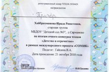 На международном конкурсе "СоМик", проходившей в г.Альметьевск, наша воспитанница Хайбрахманова Ирада стала призером. 22.10.2018