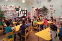 По средам воспитанники подготовительной и старшей групп с удовольствием занимаются в кружке "В школу с английским"./ Һәр чәршәмбе мәктәпкә хәзерлек hәм зурлар төркеме балалары "Мәктәпкә инглиз теле белән" түгәрәгендә бик яратап шөгылләнәләр.