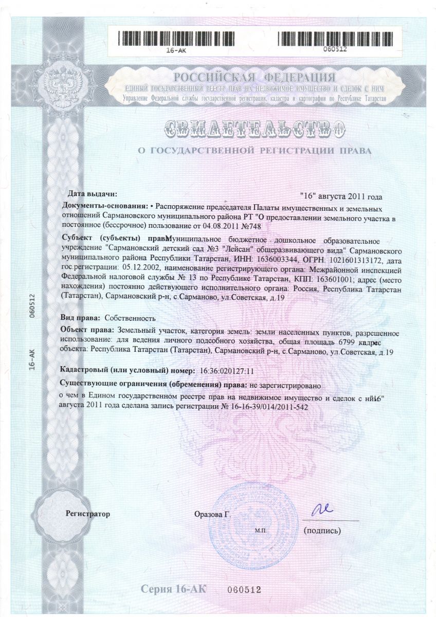 Муниципальное бюджетное дошкольное образовательное учреждение «Сармановский детский сад № 3 « Лейсан» общеразвивающего вида» Сармановского муниципального района Республики Татарстан / Татарстан Республикасы Сарман муниципаль районы "Гомуми үсеш төрендәге "Ләйсән" №3 Сарман балалар бакчасы" муниципаль бюджет мәктәпкәчә белем бирү учреждениесы