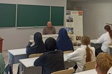 На встречу в школу пришел выпускник 1979 года Амир Ахатович Халиков. Ребята с интересом слушали его рассказ.