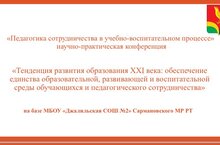 Сегодня 28 февраля 2025 г. на базе МБОУ «Джалильская СОШ №2» в онлайн формате прошла работа секции «Педагогика сотрудничества в учебно-воспитательном процессе» в рамках научно-практической конференции «Тенденция развития образования ХХI века: обеспечение единства образовательной, развивающей и воспитательной среды обучающихся и педагогического сотрудничества», организованная ГАОУ ДПО ИРО РТ совместно с Управлением образования Исполнительного комитета Нижнекамского муниципального района Республики Татарстан. В работе секции, прошедшая по 4 направлениям, приняли участие 29 педагогов.