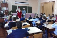 С утра, в нашу школу, пришёл Дедушка Мороз со Снегурочкой.