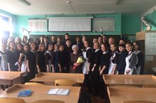 Ученики 9 а,в класса встретились с уважаемыми в поселке людьми. Это Мунир и Майсара Мунавировы. Жизнь этих людей достойна подражания.Октябрьнең беренче көне күңелләрдә хөрмәт хисе уята, аеруча игътибарлы һәм ихтирамлы булырга кирәклеген искәртә торган бер бәйрәм алып килә. Бу - Өлкәннәр көне. Ә мөгаллимнәр өчен бу икеләтә бәйрәм. Бик тиздән Укытучылар көне дә ишек кага. Бүгенге сыйныф сәгатьләре шушы ике бәйрәмгә багышланганга, мәктәптә ветеран укытучылар күп булды. Укучылар алдында М.Ш. Йөзлебаева, Р.З.Кәлимуллина, Н.А.Юшкова, Д.Ә.Рахимова, Л.А.Юнысовалар чыгыш ясадылар. Мәктәп тарихы, үзләренең тормыш, хезмәт юллары турында сөйләделәр. Ә 9 а, в сыйныфында очрашуда бистәнең хөрмәтле кешеләре Мөнир һәм Мәйсәрә Мөнәвировлар булды.
