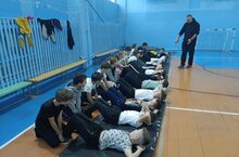 4б сыйныф укучылары физик культура укытучысы Э.Р. Ихсанов һәм тәрбия буенча директор киңәшчесе Э. М. Салахова белән берлектә ГТО нормаларын тапшыралар.