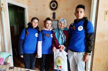Җиңү көне алдыннан Җиңү волонтерлары бистәдә яшәүче сугыш һәм тыл ветераннарына район Башлыгы бүләкләрен тапшыруда катнаштылар.