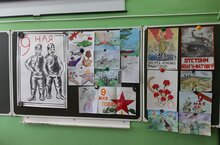 Халкыбызның бөек бәйрәме алдыннан укучылар төрле акцияләрдә катнашуларын дәвам итәләр. Тарих укытучылары Харисова И. М. белән Сәлимгәрәева. Ә.М.көче белән халкыбыз батырлыгын сүрәтләгән рәсемнәр күргәзмәсе оештырылды. Иртән 2 б сыйныф укучылары рәте каршы алды, фронт җырлары яңгырады.