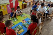 В подготовительной группе провели турнир по шашкам. Играла Сальманова Рамина с друзьями