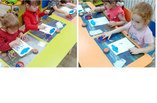 Дети первой младшей группы рисовали гуашью дождик . Но прежде чем приступить к рисованию дети слушали стихотворение и отгадывали загадку про дождь, с огромным удовольствием играли в подвижную игру «Солнышко и дождик». Малыши очень старались изобразить на бумаге свои впечатления, аккуратно рисовали пальчиками капельки дождя./ Беренче кечкенәләр төркеме балалары гуашью яңгыр ясадылар . Әмма рәсем ясарга керешкәнче балалар шигырьләр тыңладылар һәм яңгыр турында табышмакларга җавап бирделәр, «Кояш һәм яңгыр»дигән хәрәкәтле уен уйнадылар. Нәниләр кәгазьдә үз хис-тойгыларын сүрәтләргә тырыштылар, яңгыр тамчыларын бармак белән ясадылар