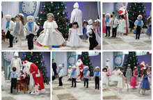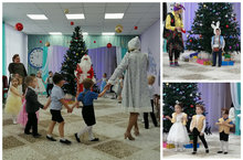 Разноцветные, сверкающие гирлянды и ярко украшенная ёлочка принесли детям ощущение чуда. С самого начала представления сказочные герои увлекали детей в волшебный мир сказки. Дети окунулись в праздничную атмосферу приключений, поучаствовали в интересных конкурсах. С появлением Деда Мороза начался настоящий праздник с песнями и танцами, хороводами вокруг ёлки.