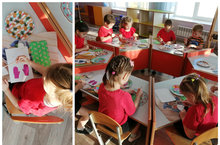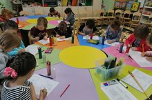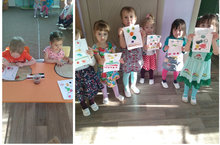 Рисование — самый популярный среди детей вид изобразительной деятельности, в ходе которого с помощью красящих материалов создаются изображения окружающей действительности. Оно знакомит детей с окружающим миром, формирует эстетический вкус, развивает креативность.Дети младшей группы украшали платье для куклы./ Рәсем-рәсем ясау-рәсем ясау эшчәнлегенең иң популяр төре, аның барышында буяу материаллары ярдәмендә әйләнә-тирә чынбарлыкның сурәтләре барлыкка килә. Ул балаларны әйләнә-тирә дөнья белән таныштыра, эстетик зәвык формалаштыра, креативлыкны үстерә. Кече төркем балалары курчаклар өчен күлмәк бизәделәр. -