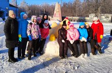 И снова снежные скульптуры, созданные сотрудниками детских садов и школ, украшают площадь у центральной елки нашего поселка. Создание снежных построек на площади Дома культуры стало традиционным. Они украшают место проведения Новогодних гуляний, вызывая у взрослых и детей положительный эмоциональный настрой, позволяет вдоволь насладиться снежными забавами. Наш коллектив принял активное участие в лепке снежных фигур… и вот ... курочка Ряба готова!!!