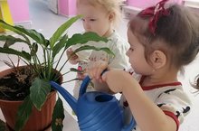 Во 2-ой младшей группе уход за комнатными растениями малышам ещё недоступен: воспитатель делает это сам, но обязательно в присутствии детей; некоторые дети могут и немного помочь взрослому: подержать лейку, налить в неё воды, вытереть широкий лист влажной тряпочкой и т.д. В процессе работы необходимо объяснять детям, что поливают растения и вытирают пыль с листьев для того, чтобы они лучше росли.