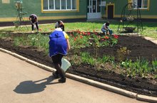 Высадка рассады и создание на территории детского сада разноцветных цветочных клумб в рамках участия во всероссийской акции «Разноцветное лето» в рамках реализации международной программы «Эко-школы/Зеленый флаг».