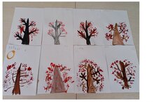 Дети с интересом, при помощи новых инструментов, раскрашивали свои цветущие деревья