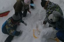 Подготовительная к школе группа после обильного снегопада вышла на уборку снега на своём участке. С утра дети пришли в детский сад с лопатками и с нетерпением ждали, когда пойдут на прогулку. Вооружившись лопатами, ребята отправились на участок. Сколько было удивления, когда на участке они не обнаружили дорожки, ведущей к веранде. После того, как очистили участок от снега, рбета решили отдохнуть и поиграть в снежки, было очень весело.