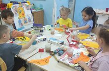 В подготовительной к школе группе "Радуга" ребята упражнялись в декоративном рисовании. Цели и задачи: Закрепить у детей умение самостоятельно составлять узор по мотивам городецкой росписи, используя знания, умения и опыт, полученные на предшествующих занятиях; подбирать их цвет в зависимости от фона изделий, самостоятельно выбирать элементы для своего узора, называть их. Упражнять в рисовании всем ворсом, концом кисти, ватными палочками. Развивать память, мышление, внимание, слуховое восприятие, мелкую моторику, активизировать речь детей. Воспитывать интерес к русскому народному декоративно-прикладному искусству.