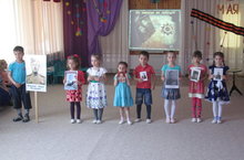 Сегодня, накануне 9 мая в детском саду прошли мероприятия, посвященные дню Великой Победы: утром воспитанники вышли на утреннюю зарядку под мелодии военных лет, затем состоялся утренник. Дети рассказывали стихи о войне; пели песни о празднике победы, о мире, о солдатах, танцевали и играли. Все сотрудники ДОУ и воспитанники почтили память погибших в ВОВ минутой молчания.