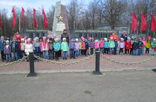 Ә өлкән һәм мәктәпкә әзерлек төркемнәре мәңгелек ут монументы янына бардылар, анда гадәттәгечә чәчәкләр салдылар, шулай ук балалар шигырьләр укыдылар.
