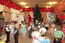В подготовительной к школе группе Дед Мороз придумывал разные игры не только для детей, но и для родителей. Наши мамы и папы на какое-то время тоже превратились в детей и участвовали в играх наравне с детьми. Было очень весело!
