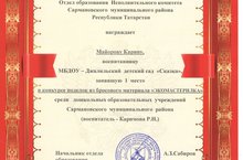 Зурлар төркеменнән Майорова Карина "Экомастерилка" муниципаль конкурсында 1 урын алды.Котлыйбыз! Тәрбияче Каримова Р.Н.